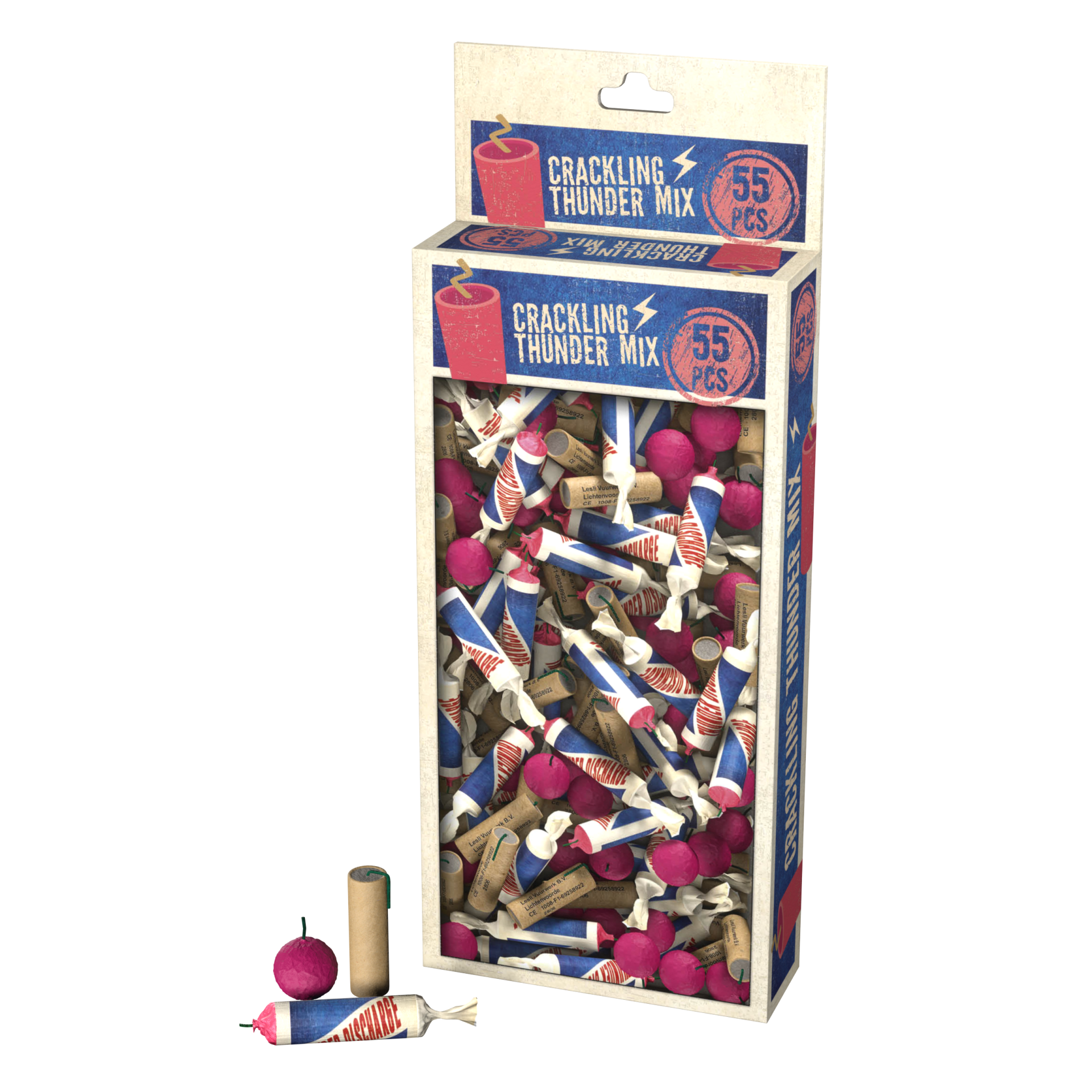 Mix and Match! De perfecte mix van crackling thunder kanonslagen en crackling thunder ballen! Pak die mix! 55 stuks.